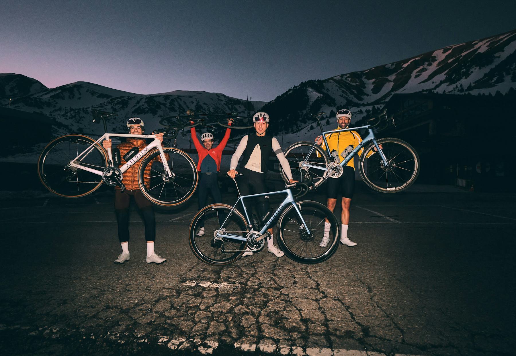 Five cyclists. Five Aurum Magma. White wolf included.