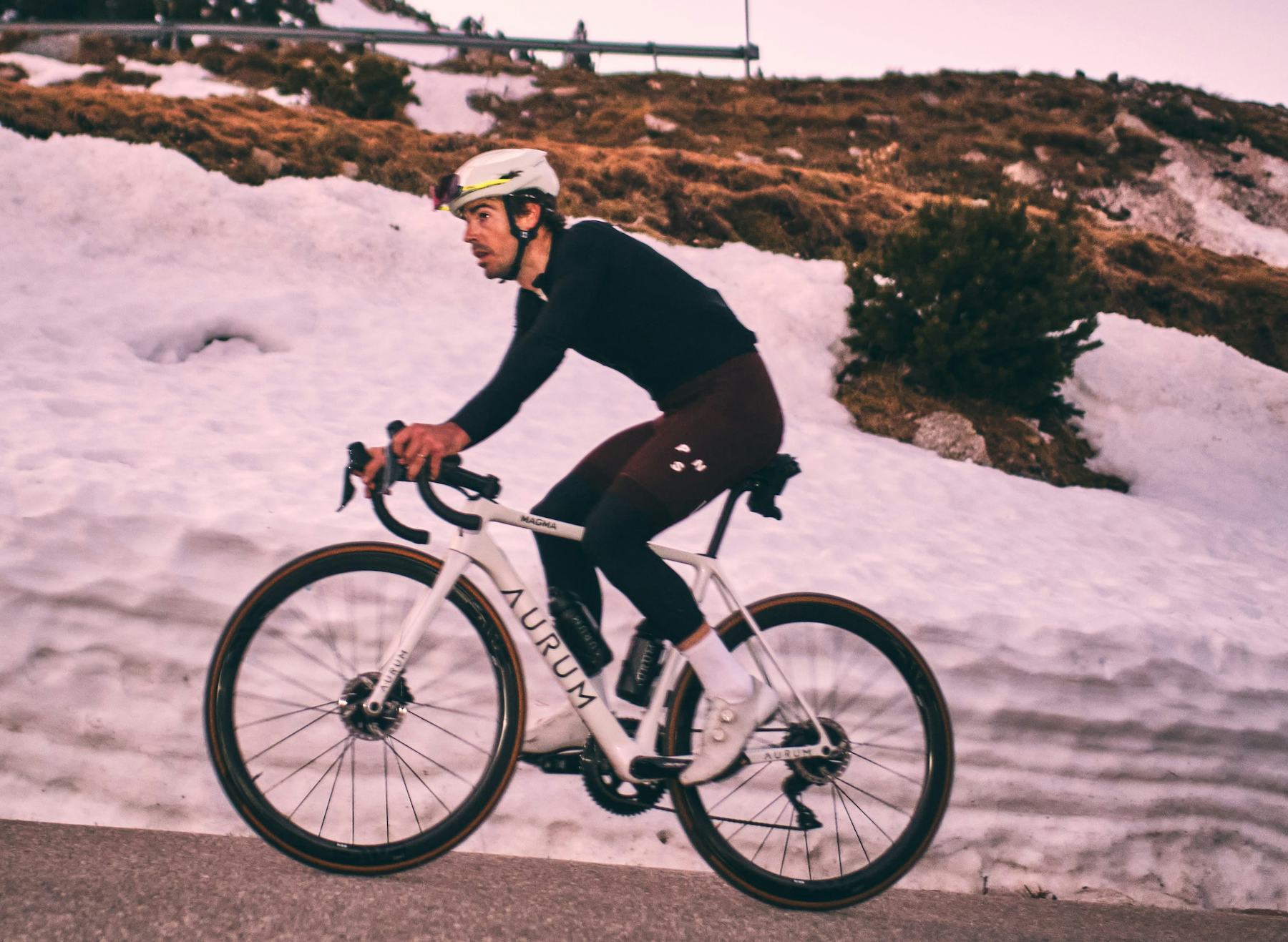 From Barcelona to Vallter 2000, traveling two hundred and twenty kilometers and ascending four thousand six hundred meters of unevenness to bring the new Aurum Magma Artic White to his habitat.