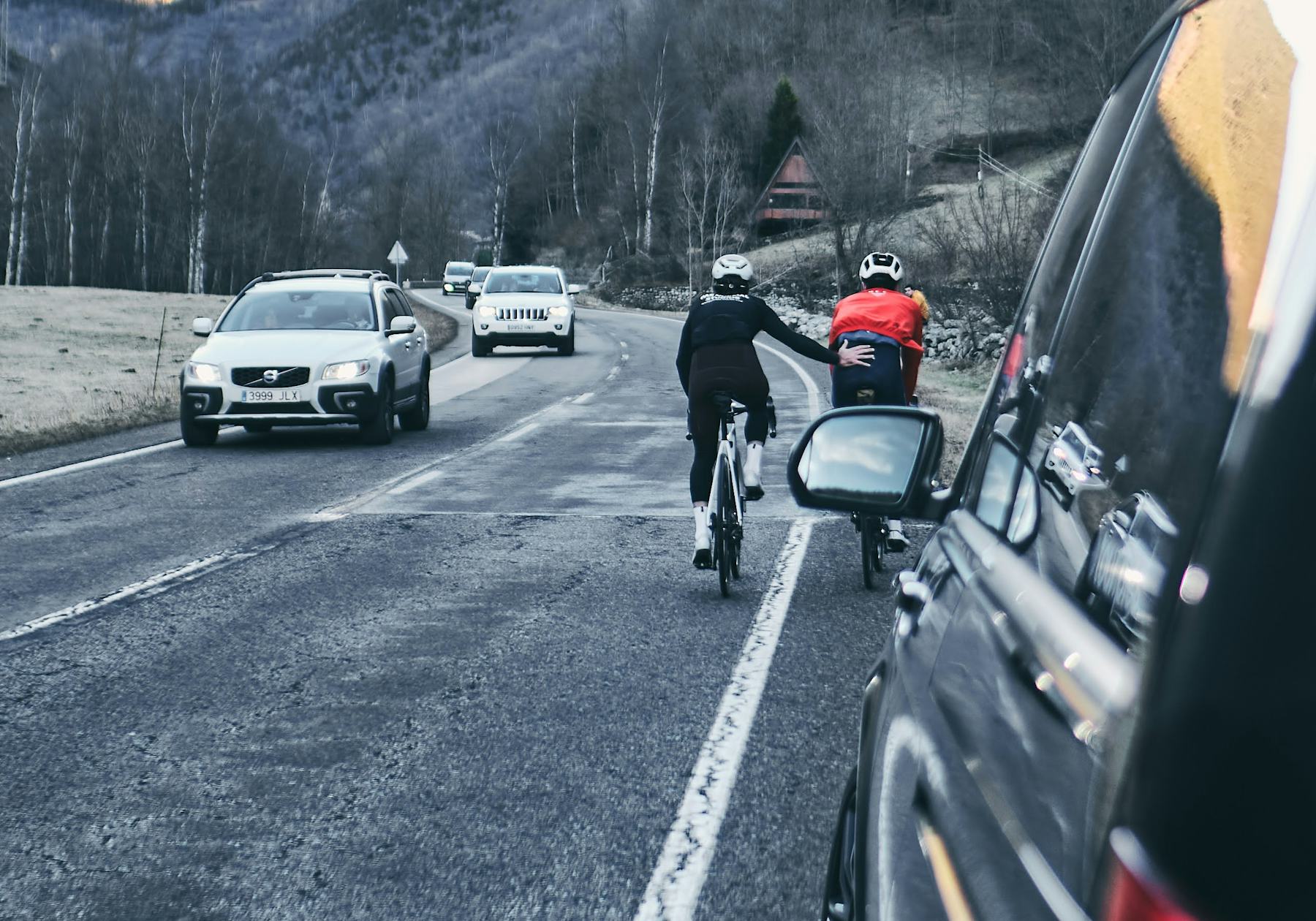 Sergi can't take it anymore. His legs have said enough. Ismael with continuous ramps. David next to Ismael telling him that "By your mother you get to the top", while he helped him with some push. Enric doing eses to overcome the first really hard kilometers. Oriol rising to the rhythm of him.